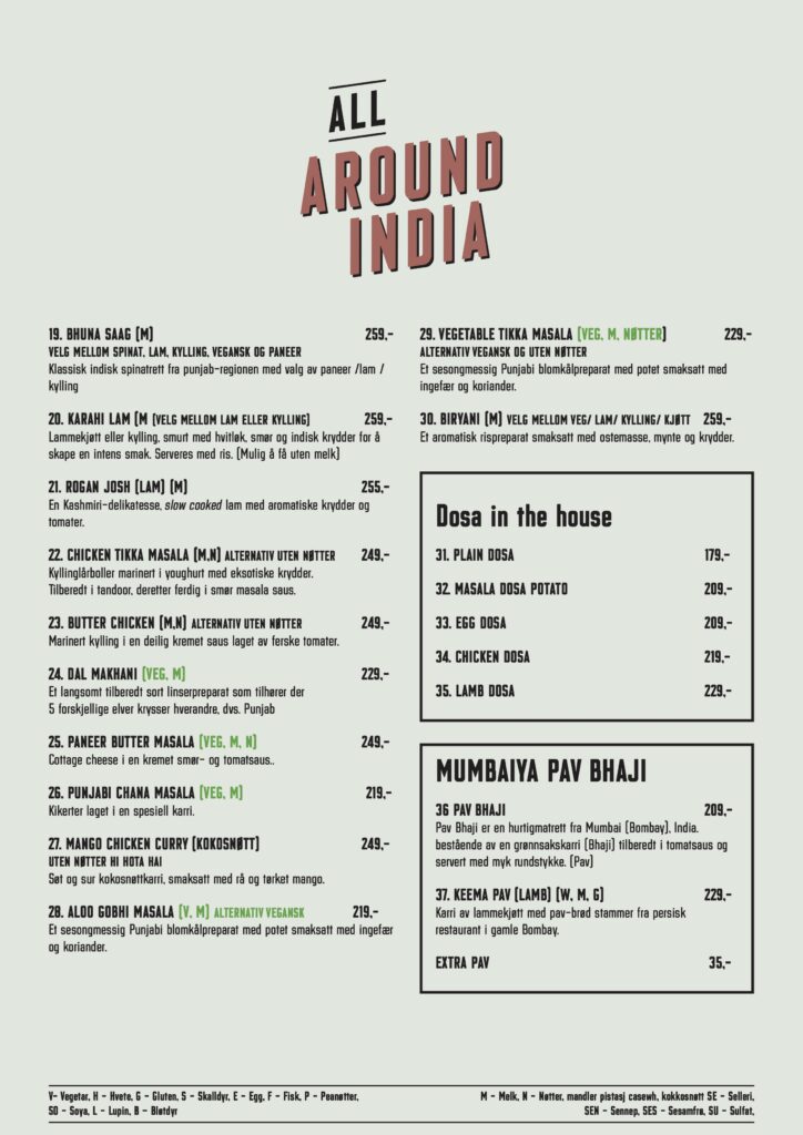 Våre kokker har jobbet på noen av de mest kjente hotellene og restaurantene i India, og leverer street food, cocktails og fine dining – alt under samme tak.
